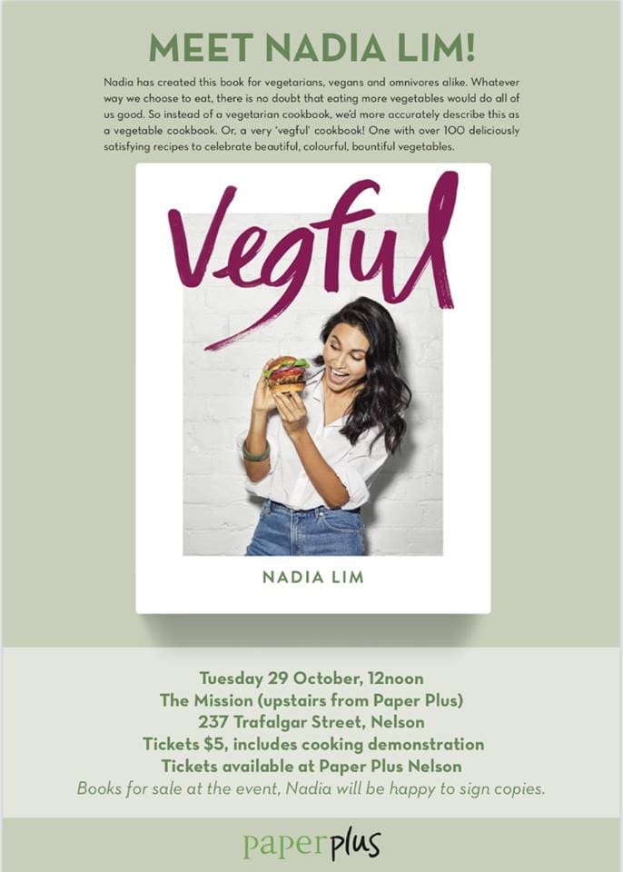 The amazing Nadia Lim is popping into Paper Plus Nelson on Tuesday 29th October to give us a look at her new cookbook Vegful – and she is even going to demonstrate some of the recipes from the book for us!