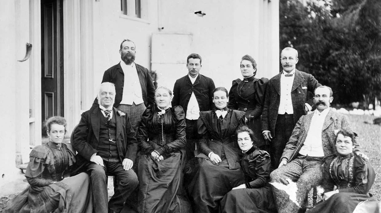 A Green family photograph already in the Nelson museum’s collection will likely be displayed alongside the Lindauer portrait. Edward Green and his wife, Isabella, are second and third from the left, front row.